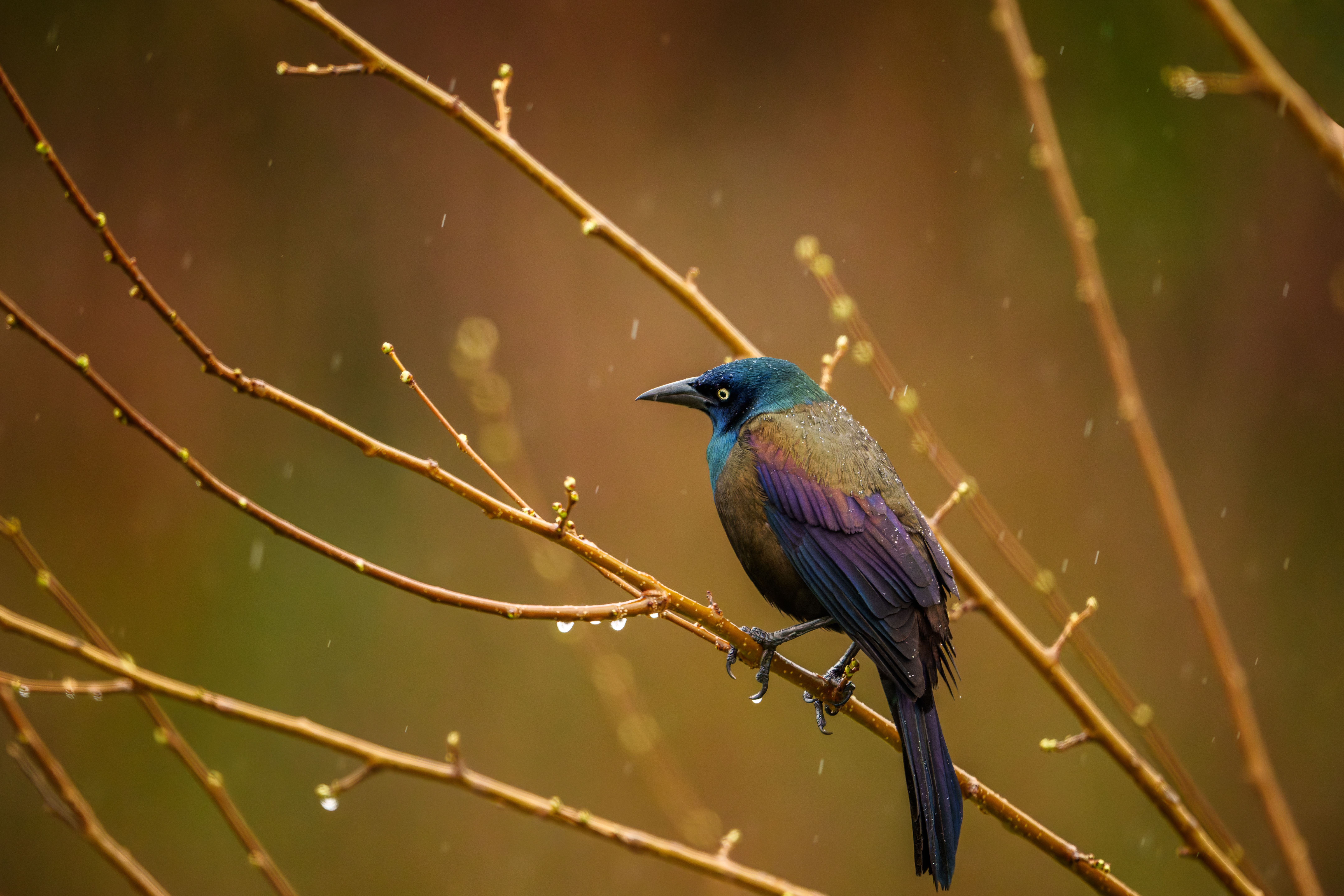 Rainy Day with Common Grackles